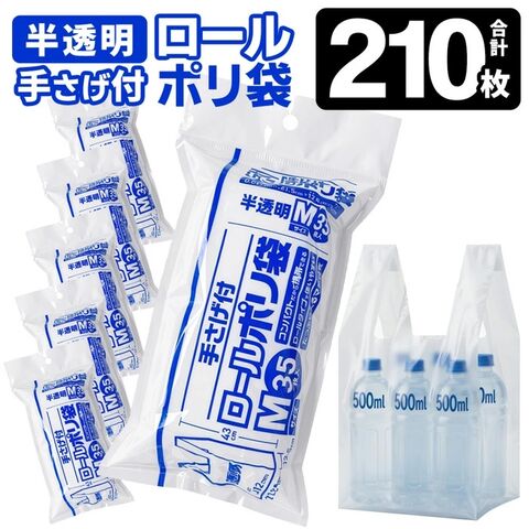 | 手さげ付 半透明 ロールポリ袋 Mサイズ 35枚入×6個 |