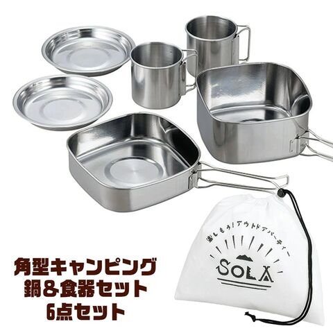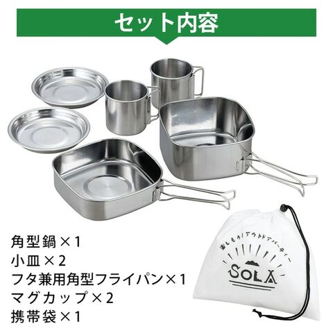 | セット内容 | 角型鍋×1 小皿×2 フタ兼用角型フライパン×1 マグカップ×2 携帯袋×1 |