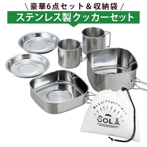 キャンピング鍋 6点セット アウトドアクッカー 調理道具 ステンレス製 フライパン・鍋・皿・コップ 重ねてコンパクト【 キャンプ 釣り 登山 ソロキャンプ 料理 ラーメン 2人用 軽量 新着!】 //60N◇ キャンピング鍋6点組