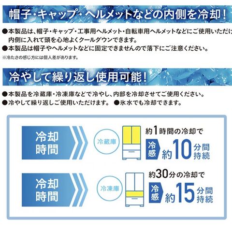 帽子やヘルメットの内側にセットしてかぶるだけでクールダウン!