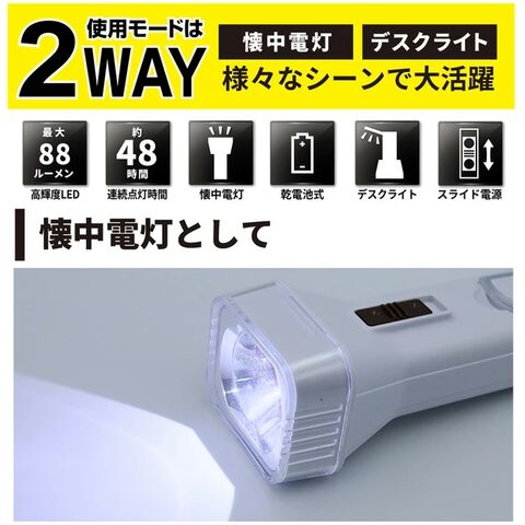ハンディライト 2WAY 懐中電灯×デスクライト 乾電池式 ついで買い特集【 ハンディーライト 卓上 LEDライト 防災ライト 作業灯 点検 キャンプ アウトドア 夜道 軽量 防災用品 】 /60N◇ 懐中電灯&デスクライト