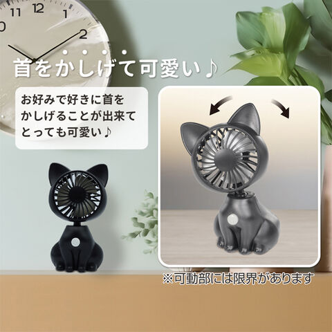 送料無料 ! 扇風機 ハンディファン ネコ型 首振り卓上 首をかしげる 電池式 ( 小型扇風機 猫 かわいい ミニ扇風機 コードレス 節電 ) 当店イチオシ 送料込 7M◇ ネコファン:ブラック