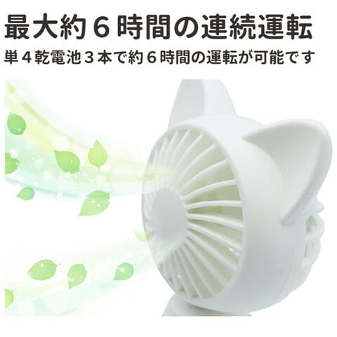 インテリアとしても可愛い、 ネコ型卓上扇風機。 どこでも使える 乾電池式。 | |
