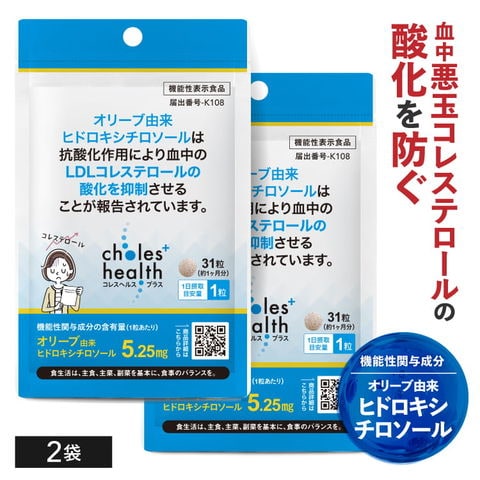 ヒドロキシチロソール サプリ 悪玉コレステロール LDLコレステロール 酸化を抑制 血中 抗酸化作用 リコピン トマト 機能性表示食品 サプリメント オリーブ由来 酸化悪玉コレステロール 減らす 下げる コレスヘルス+ 2袋