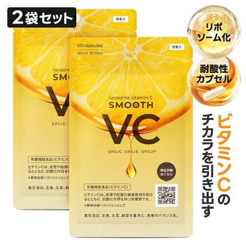 リポソーム ビタミンC サプリ 日本製 高濃度 ピュアビタミンC 高吸収 持続型 安定型 耐酸性カプセル リポソームビタミンC リポ酸 アスコルビン酸 ビタミンE ビタミンP スムースVC 60粒 2袋 栄養機能食品 医師監修