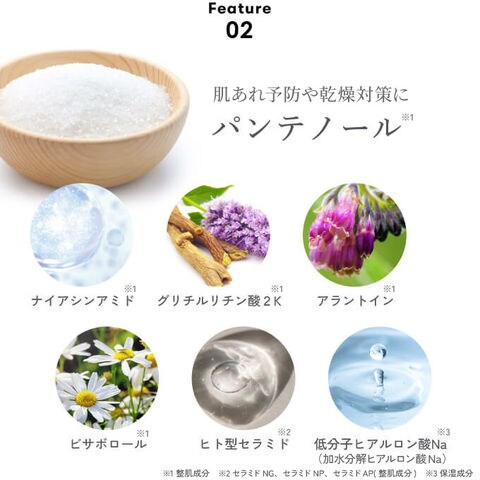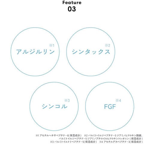 | 全成分 | 水、ネオペンタン酸オクチルドデシル、プロパンジオール、パンテノール、ペンチレングリコール、シア脂、セタノール、ステアリン酸グリセリル、ナイアシンアミド、ビサボロール、アラントイン、グリチルリチン酸2K、グラブリジン、フィトステロールズ、セラミドNG、セラミドAP、セラミドAG、セラミドNP、セラミドEOP、ヒアルロン酸ヒドロキシプロピルトリモニウム、レチノール、パルミチン酸レチノール、リノール酸レチノール、ラウロイルグルタミン酸ジ(フィトステリル/オクチルドデシル)、パルミトイルジペプチド-5ジアミノヒドロキシ酪酸、パルミトイルジペプチド-5ジアミノブチロイルヒドロキシトレオニン、パルミトイルトリペプチド-5、アセチルヘキサペプチド-8、アセチルデカペプチド-3、加水分解ヒアルロン酸Na、キョウニン油、コーン油、スクワラン、ミネラルオイル、ローズマリー葉エキス、ジメチコン、グリセリン、カプリリルグリコール、BG、オクテニルコハク酸デンプンAl、キサンタンガム、水添レシチン、シクロデキストリン、ステアリン酸PEG-40、(アクリル酸ヒドロキシエチル/アクリロイルジメチルタウリンNa)コポリマー、イソステアリン酸ソルビタン、PPG-6デシルテトラデセス-30、ポリソルベート60、ポリソルベート20、トコフェロール、クエン酸、エチルヘキシルグリセリン、1,2-ヘキサンジオール、フェノキシエタノール |