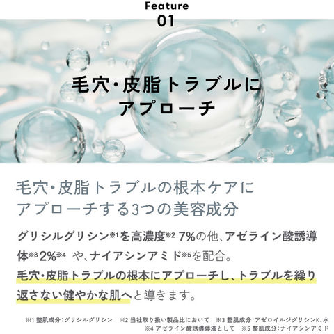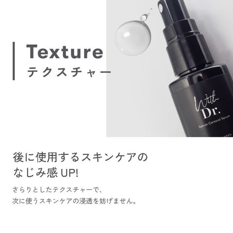 グリシルグリシンを高濃度7%、アゼライン酸誘導体2%、 ナイアシンアミドの3つの成分が毛穴・皮脂トラブルの根本ケアにアプローチ。 多方面にアプローチする導入美容液。 アゼライン酸誘導体 サリチル酸 パンテノール グリシルグリシン 配合 With Dr. ウィズドクター シーバムコントロールセラム