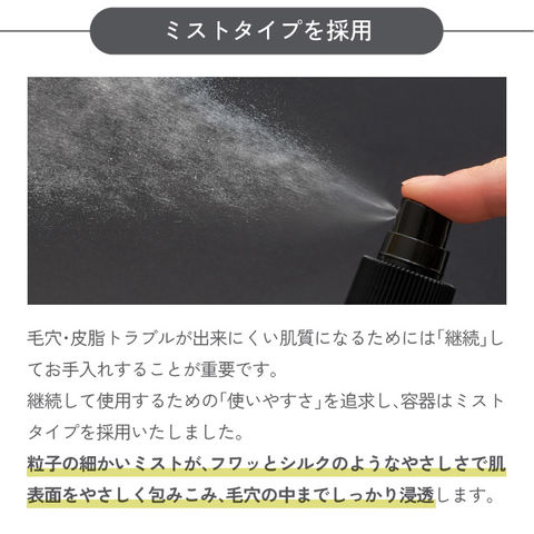 | ご使用方法 | 1日1回、夜のスキンケアの最初にご使用ください。 顔から15cmほど離して、目と口を閉じて顔全体に4~6プッシュを目安にスプレーしてください。 |