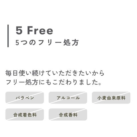 | ご使用上の注意点 | ※お肌に異常が生じていないかよく注意して使用してください。 化粧品がお肌に合わないとき即ち次のような場合には、使用を中止してください。そのまま化粧品類の使用を続けますと、症状を悪化させることがありますので、皮膚科専門医等にご相談されることをおすすめします。 (1)使用中、赤み、はれ、かゆみ、刺激、色抜け(白斑等)や黒ずみ等の異常があらわれた場合。 (2)使用したお肌に、直接日光があたって上記の様な異常があらわれた場合。 ※傷やはれもの、しっしん等、異常のある部位にお使いにならないでください。 ※目に入らないようご注意ください。目に入った場合はこすらずすぐに水で洗い流してください。 |
