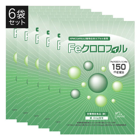 Feクロロフィル 30カプセル 6袋 栄養機能食品 鉄 エチケット クロロフィリンNa イヌリン サプリ サプリメント