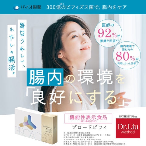 ブロードビフィ BroadBifi 30包 30日分 機能性表示食品 ビフィズス菌 BB536 腸内 環境 腸内フローラ サプリ サプリメント 医学博士劉勇監修