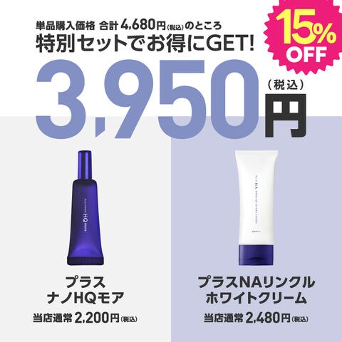 | 商品名(内容量) | プラスナノHQモア:5g ●配合成分につきましては、上記の商品名をタップしてご確認ください。 |