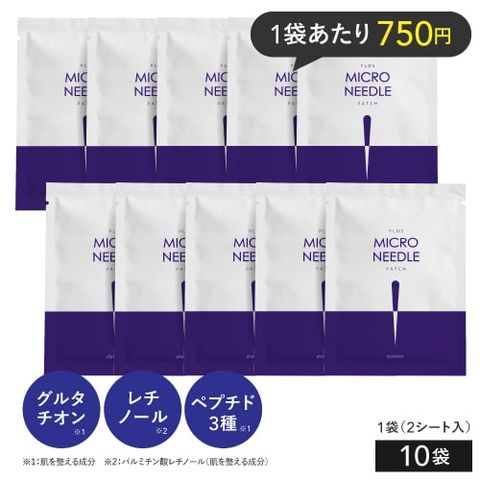 プラスマイクロニードルパッチ 10袋 マイクロニードル パッチ マイクロパッチ ニードル パッチ 針 ヒアルロン酸 パッチ 目元 刺す 貼る グルタチオン ナイアシンアミド レチノール ペプチド プラスキレイ