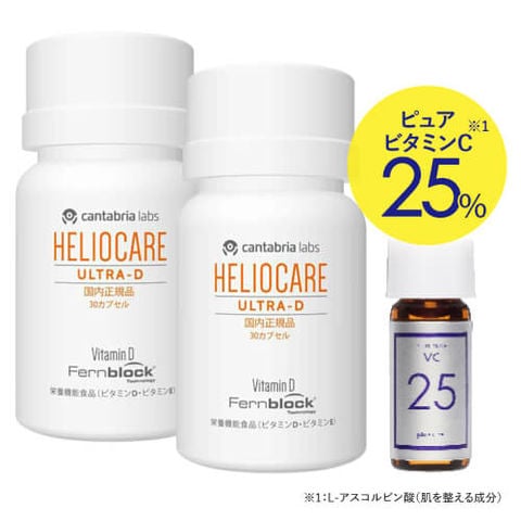 国内正規品 ヘリオケア ウルトラD 30カプセル 2箱セット + VC25ミニ 緑カプセル 栄養機能食品 サプリメント ポリポディウム レウコトモスエキス配合