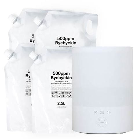 超音波加湿器 卓上 大容量 次亜塩素酸水 対応 + バイバイ菌 2.5L×4袋(小分けタイプ)500ppm 除菌消臭 ペット臭対策に 室内