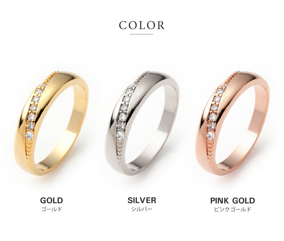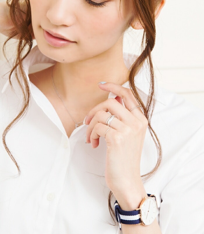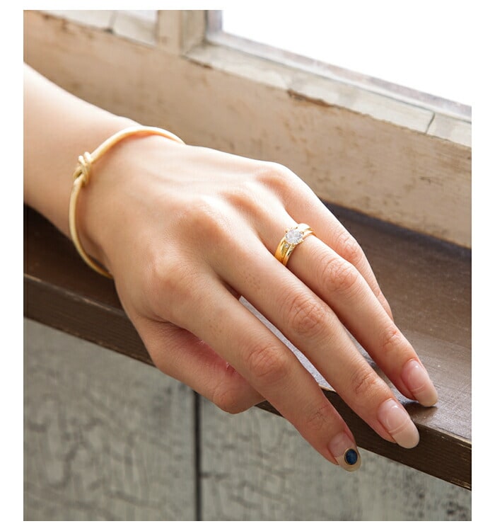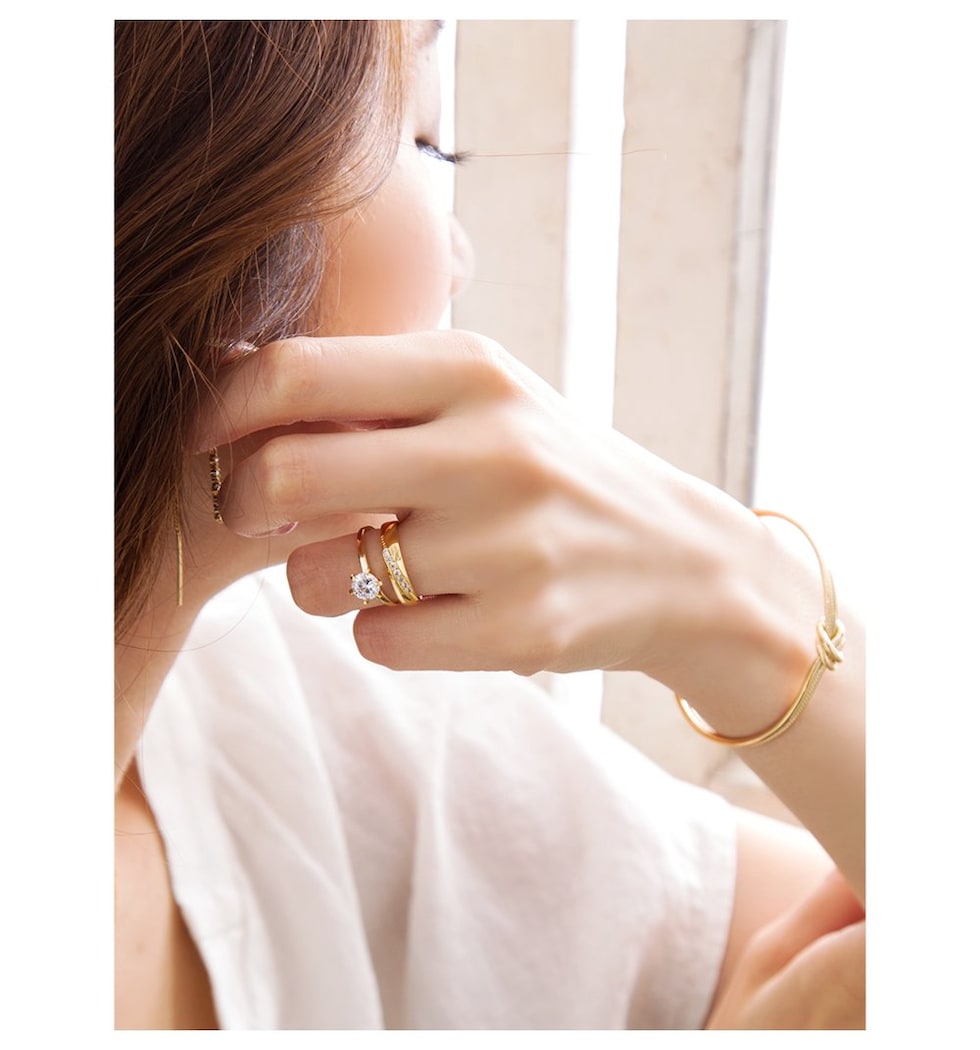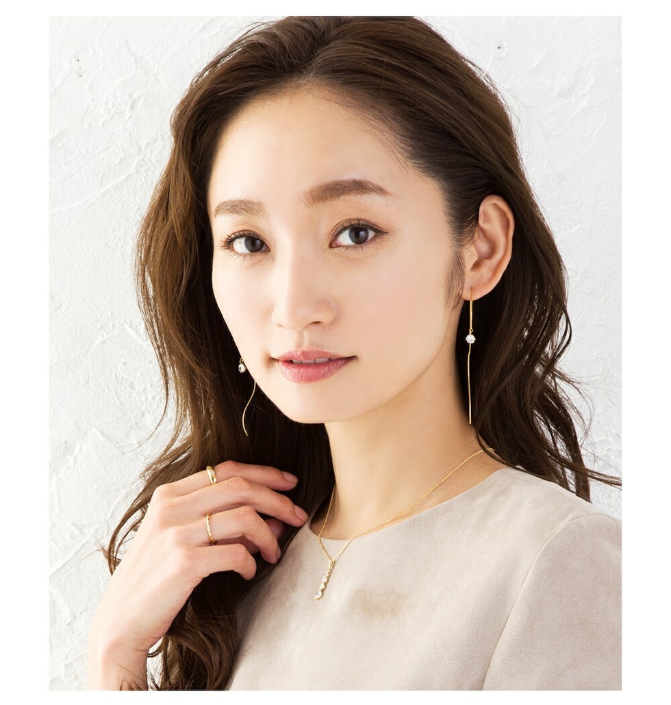 キュービックジルコニアの主張しすぎない輝きが、普段のコーディネートにも取り入れやすい。