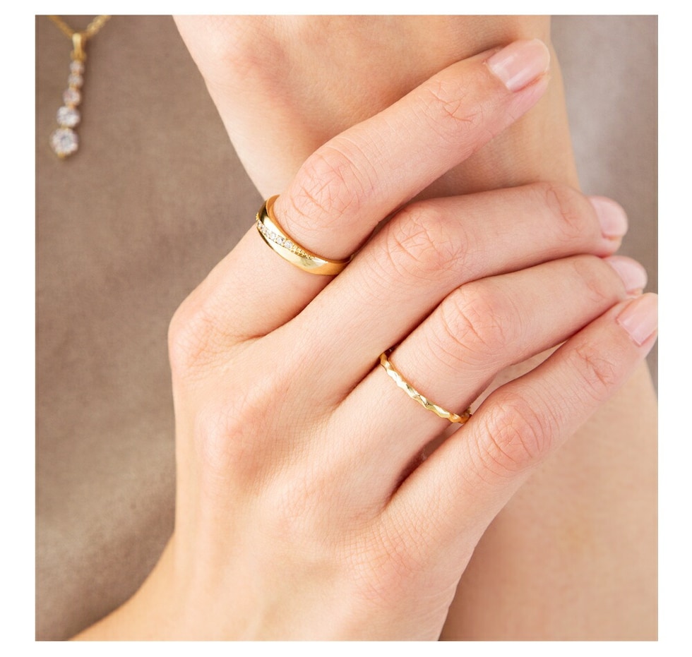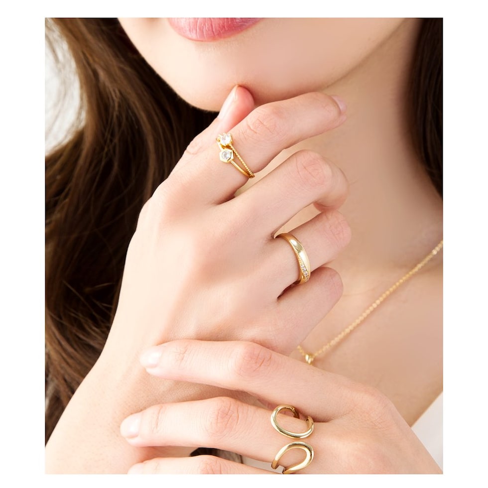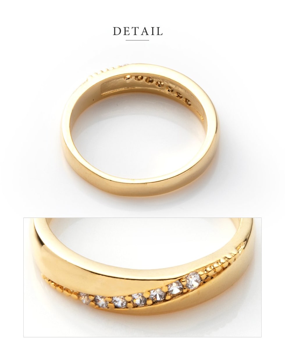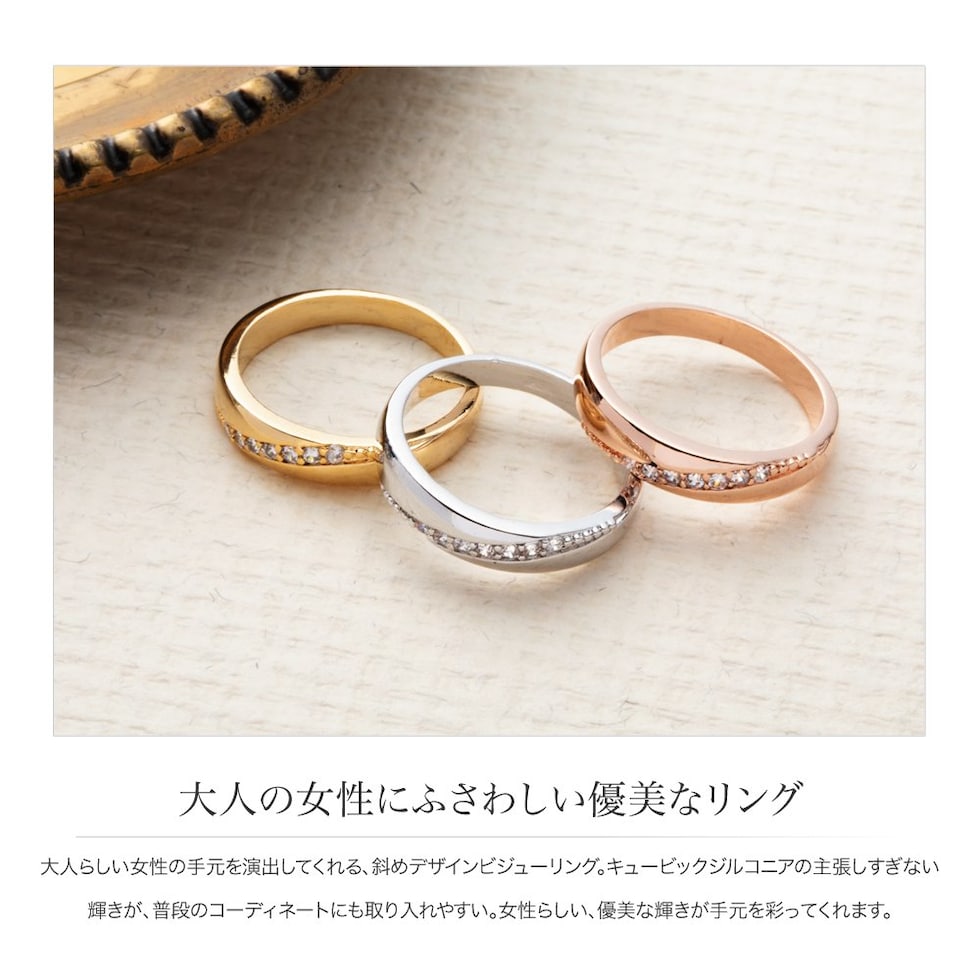 大人らしい女性の手元を演出してくれる、斜めデザインビジューリング。
