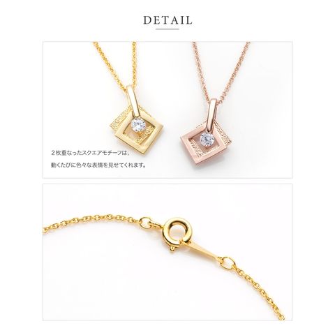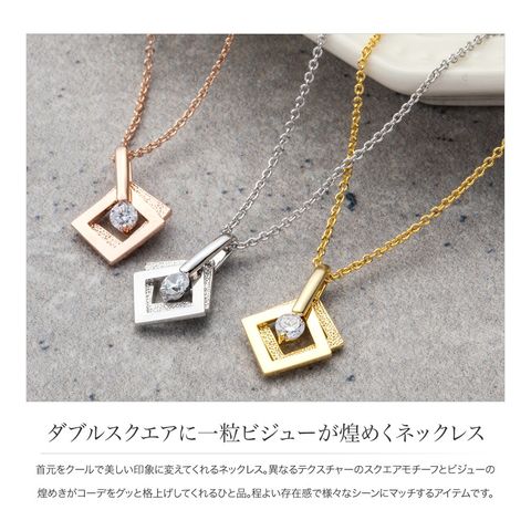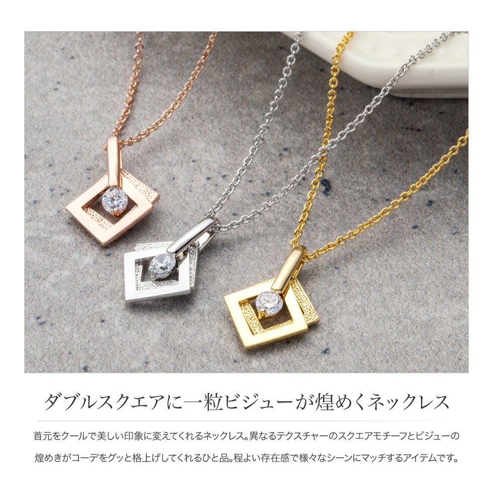 ネックレス レディース ショート ダブル スクエア 一粒ビジュー ペンダント ジュエリー cream dot ゆうパケット [ピンクゴールド_ワンサイズ]