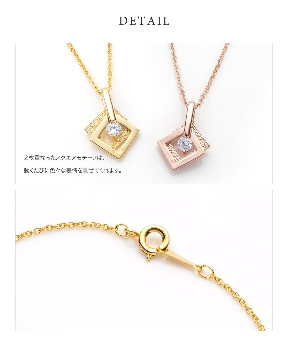 ネックレス レディース ショート ダブル スクエア 一粒ビジュー ペンダント ジュエリー cream dot ゆうパケット [ピンクゴールド_ワンサイズ]のレビュー
