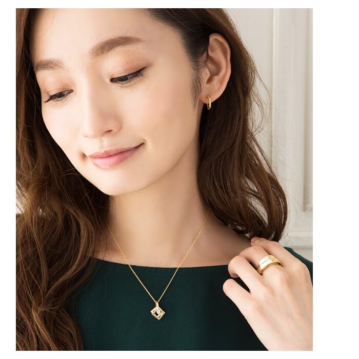 首元をクールで美しい印象に変えてくれるネックレス。異なるテクスチャーのスクエアモチーフとビジューの煌めきがコーデをグッと格上げしてくれるひと品。程よい存在感で様々なシーンにマッチするアイテムです。
