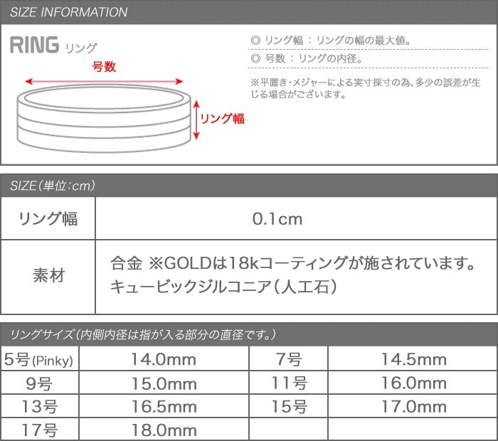 リング 指輪 レディース リング ピンキーリング Ladies 極細 デザイン カラービジュー 重ねづけ アクセサリー cream dot ゆうパケット [ゴールド_15号]