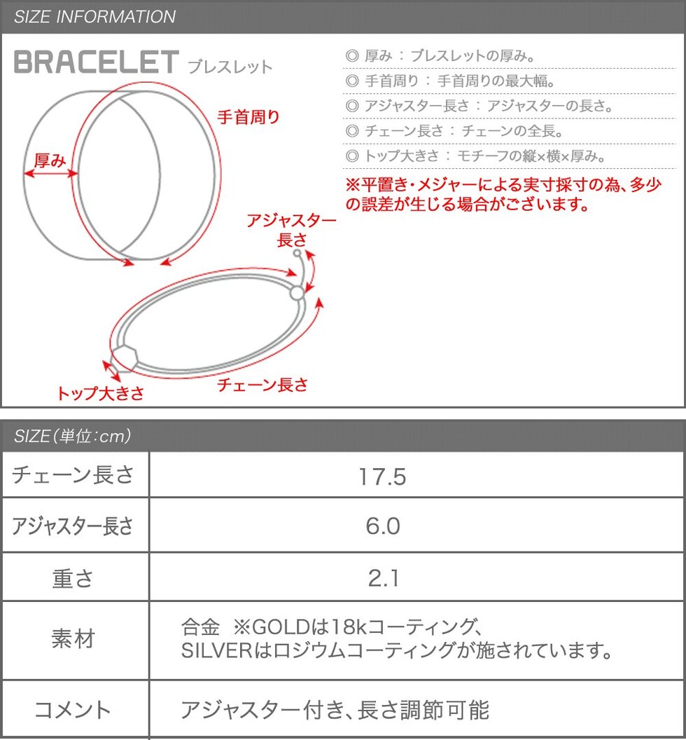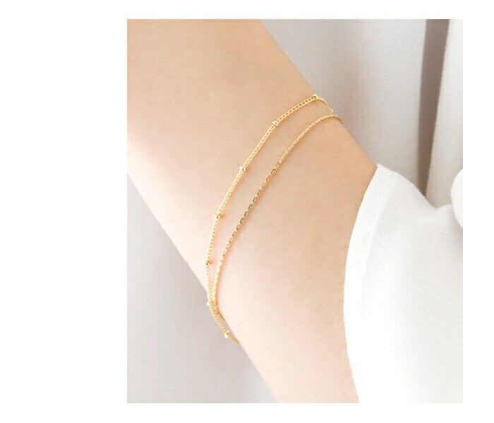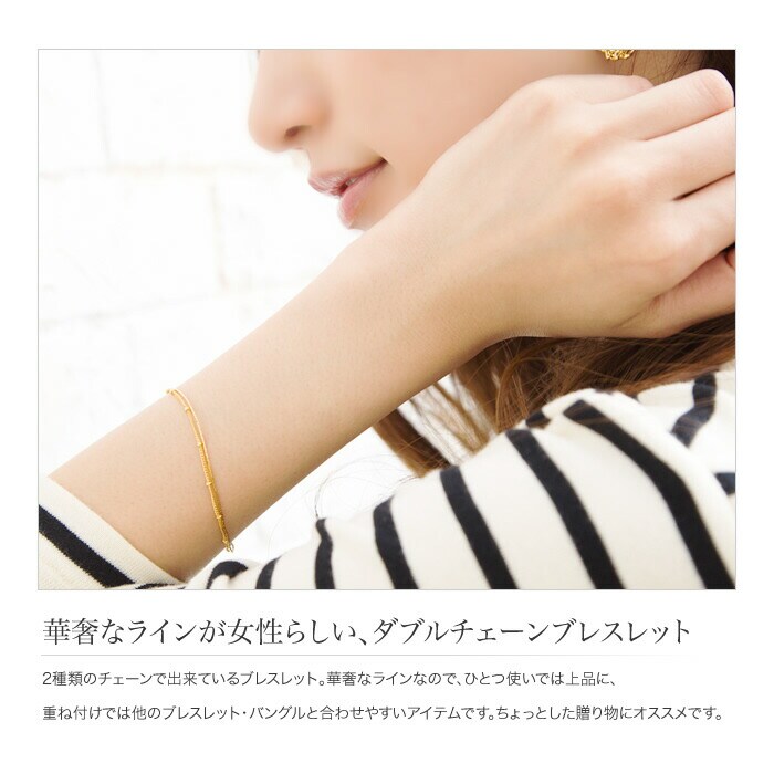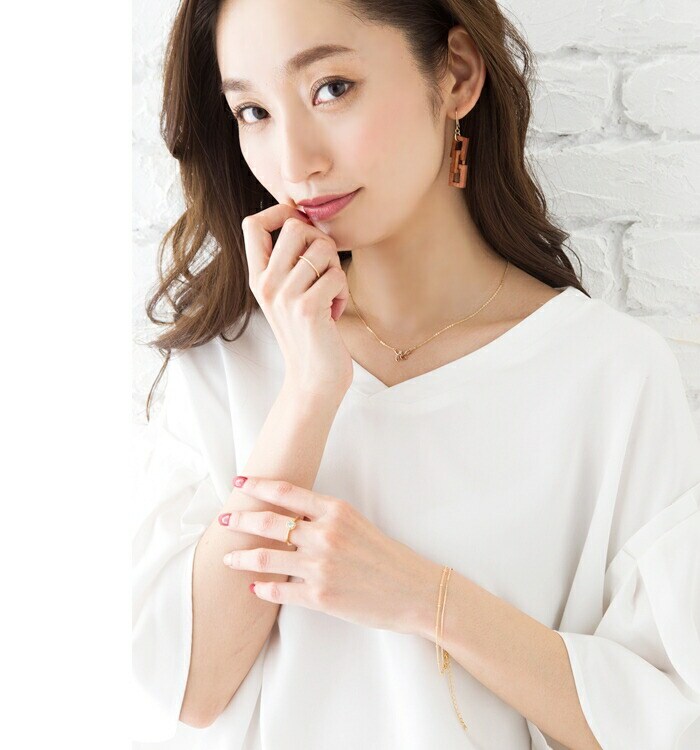華奢なラインなので、ひとつ使いでは上品に、重ね付けでは他のブレスレット・バングルと合わせやすいアイテムです。