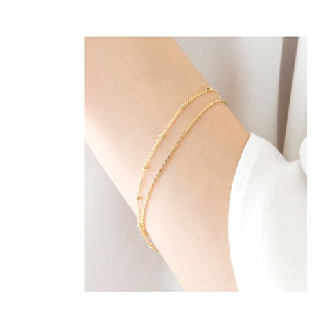 ブレスレット レディース チェーン ダブルチェーン 円 サークル 重ね付け cream dot ゆうパケット [シルバー_ワンサイズ]