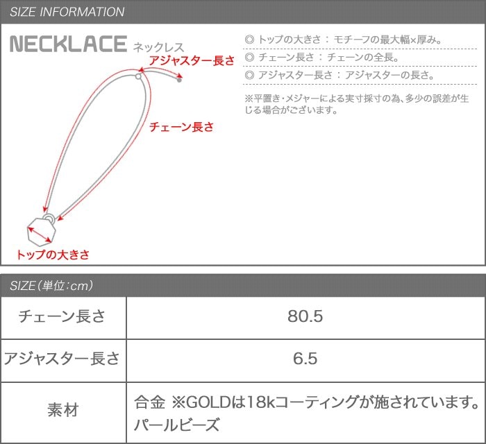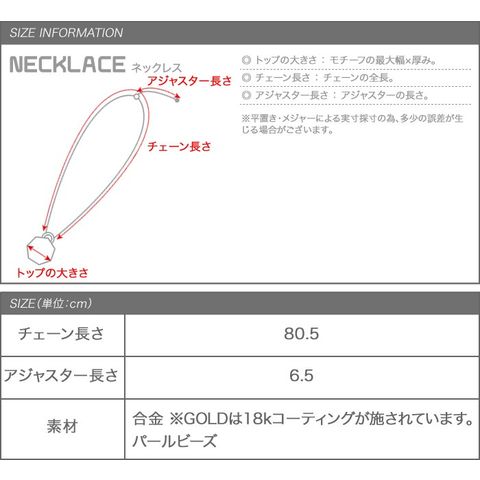 チェーン長さ:80.5cm、アジャスター長さ:6.5cm