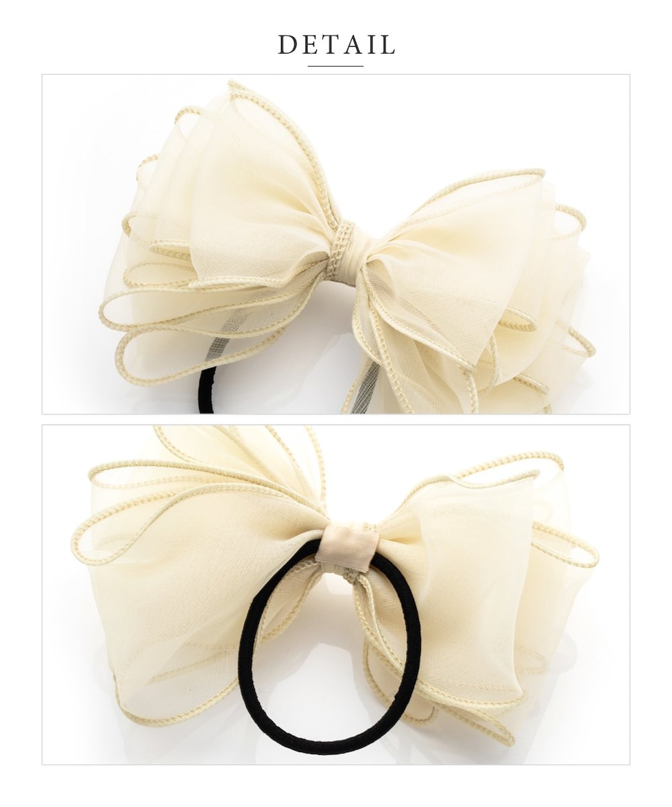 ふんわりリボンが重なったボリュームのあるヘアゴムです。
