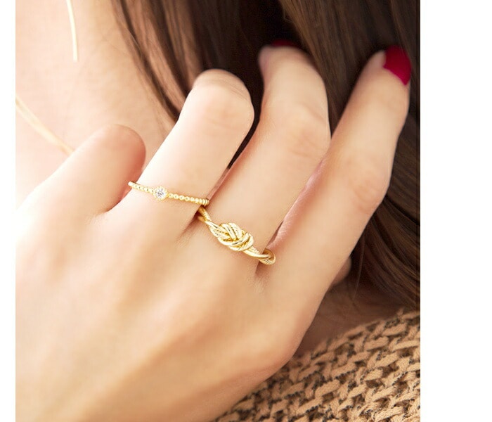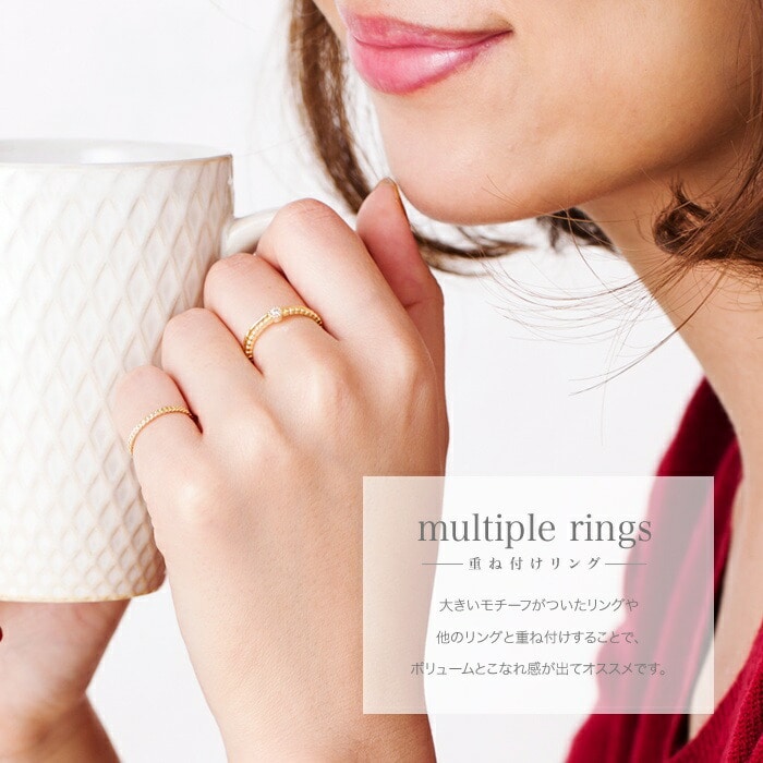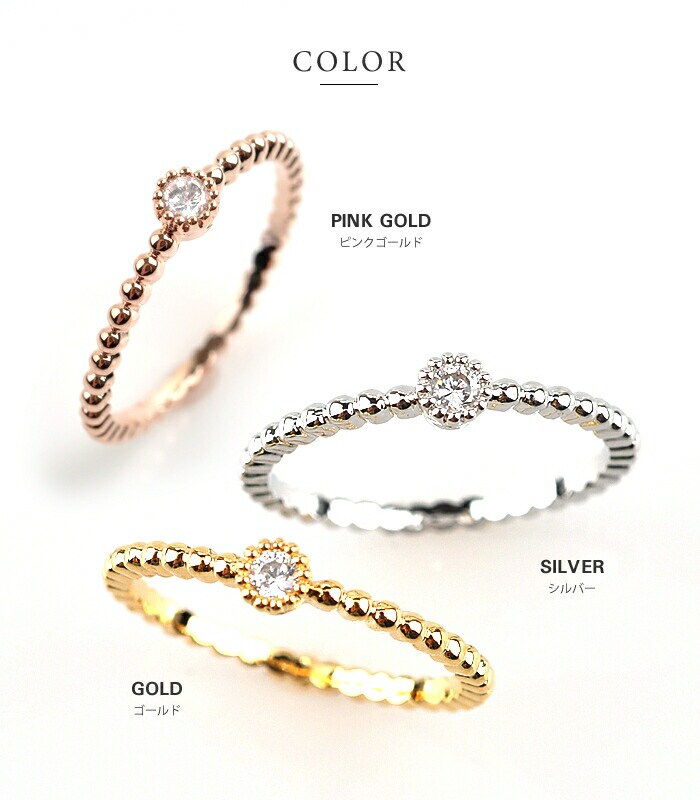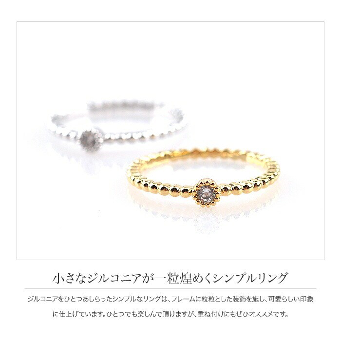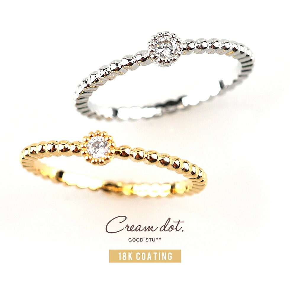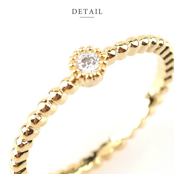 リング 指輪 レディース 一粒 ビジュー 重ねづけ 細身 デザイン ファランジリング キュービックジルコニア cream dot ゆうパケット [ゴールド_7号]