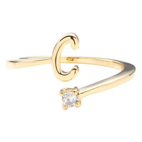 リング 指輪 レディース 2タイプ 重ねづけ フリーサイズ 1粒ビジュー イニシャル cream dot ゆうパケット [C_ゴールド:B]