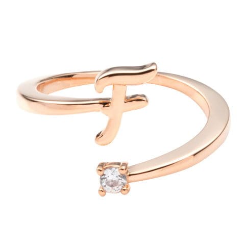 リング 指輪 レディース 2タイプ 重ねづけ フリーサイズ 1粒ビジュー イニシャル cream dot ゆうパケット [F_ピンクゴールド:B]