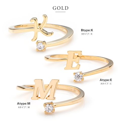 細身のイニシャルリングは女性らしい上品な印象を演出してくれます。