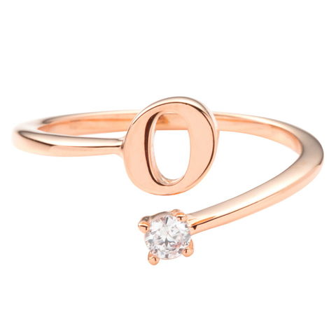 リング 指輪 レディース 2タイプ 重ねづけ フリーサイズ 1粒ビジュー イニシャル cream dot ゆうパケット [O_ピンクゴールド:A]