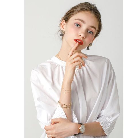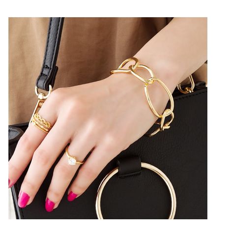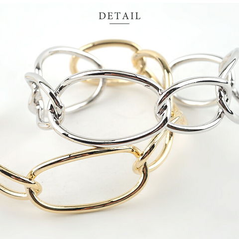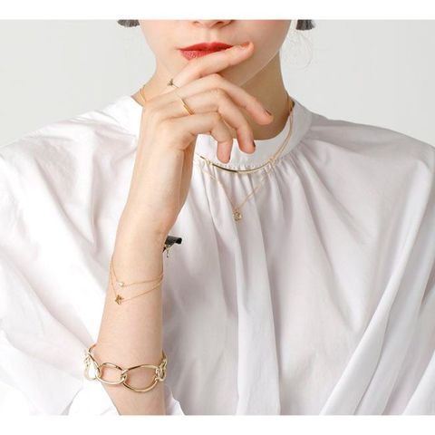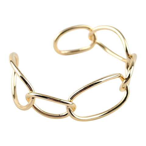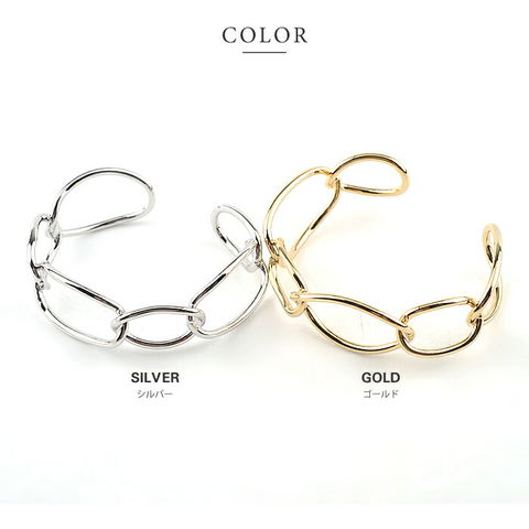 こなれた雰囲気に仕上がる変形チェーンモチーフのオープンバングル。大振りなデザインが程よい存在感をプラスしてワンランク上のおしゃれを演出します。デイリーコーデのアクセントにピッタリなひと品。