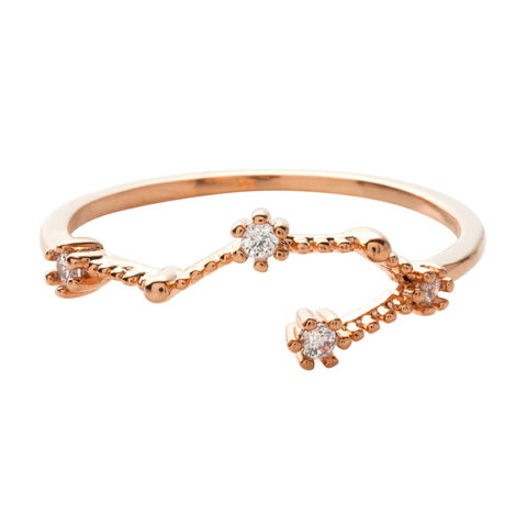 夜空に浮かぶ星を煌めくビジューに見立てた十二星座モチーフリング。程よい華やかさが指先を美しく魅せてくれます。ちょっとした贈り物にもピッタリなひと品。