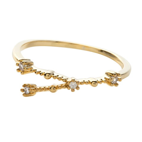 夜空に浮かぶ星を煌めくビジューに見立てた十二星座モチーフリング。程よい華やかさが指先を美しく魅せてくれます。ちょっとした贈り物にもピッタリなひと品。