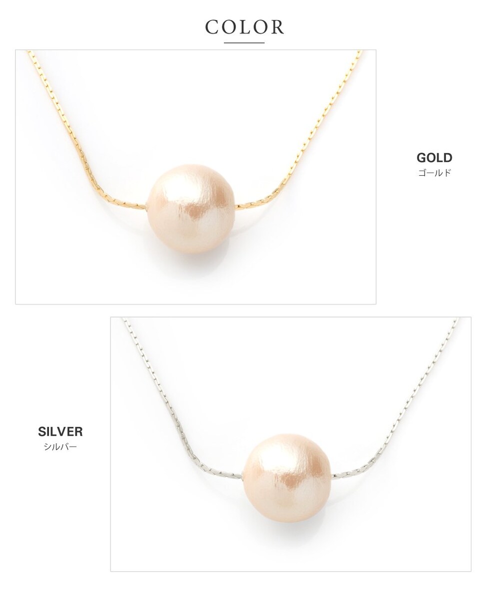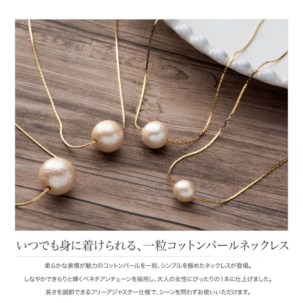ネックレス レディース ショート 1粒 コットンパール アクセサリー フリーアジャスター入学式 入園式 ママスーツ cream dot ゆうパケット [14mm×ゴールド_フリーサイズ]