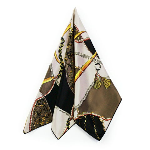 シック、キレイ色が大人上品な大判スカーフ。クラシカルなデザインがこなれた印象を演出。首元はもちろん、手首やバッグにも使えて様々なスタイルに華やかさとアクセントを加えてくれる万能なアイテムです◎