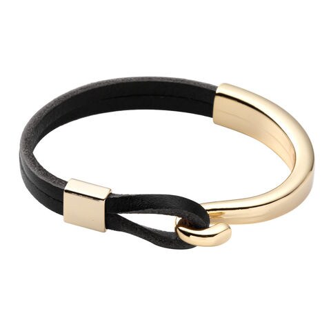 ブレスレット レディース コード 白 茶 赤 青 革 レザー クラシカル アクセサリー cream dot ゆうパケット [ゴールド:ブラック_ワンサイズ]