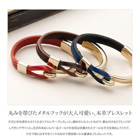 手元に存在感を与えてくれるリアルレザーブレスレット。