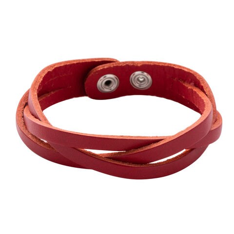 手元に存在感を与えてくれるリアルレザーブレスレット。3本を編み合わせることで、より表情豊かな印象になり、アクセント効果もアップ。2段階調節可能なスナップボタン付きで、着脱も楽ちんです。