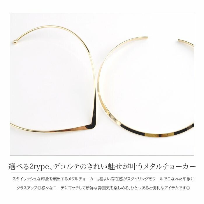 ネックレス レディース 2タイプ チョーカー ネックカフ メタルチョーカー 重ねづけ cream dot ゆうパケット [ゴールド_Aタイプ]