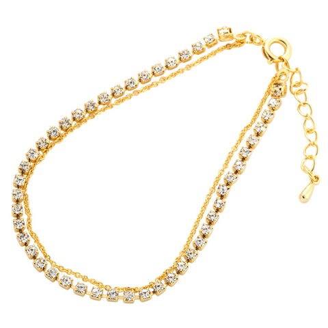 ブレスレット レディース ビジュー Ladies ジルコニア ダブルライン チェーン cream dot ゆうパケット [ゴールド_ワンサイズ]