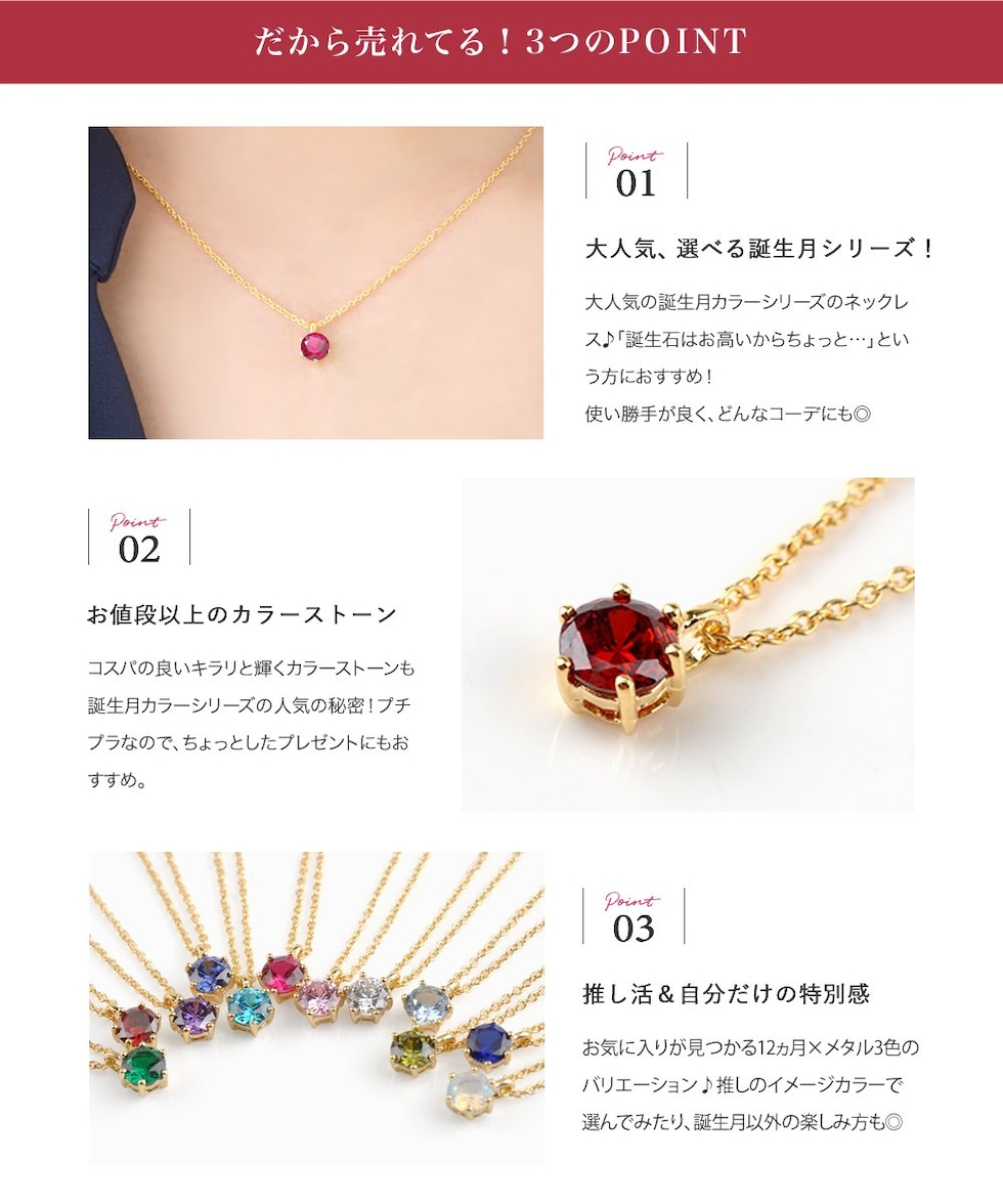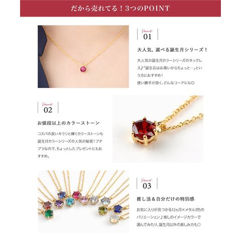 それぞれの誕生月のカラーストーン12種類の中から、ご自身や大切な方の誕生月カラーを自由にお選び下さい。華奢チェーンと小粒ワントップなため、オフィスシーンでも活躍するアイテムです◎ちょっとした贈り物にもぴったり。