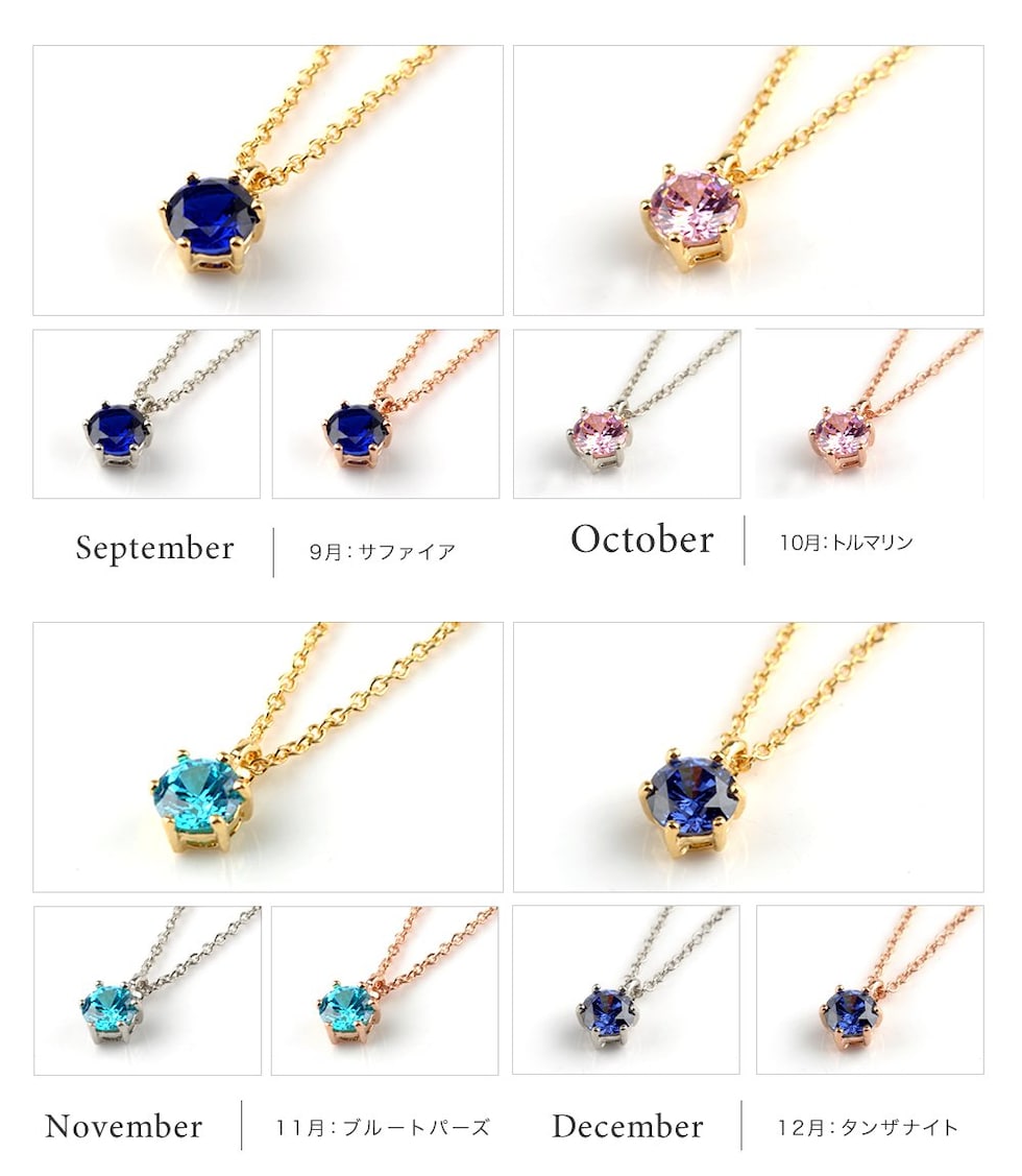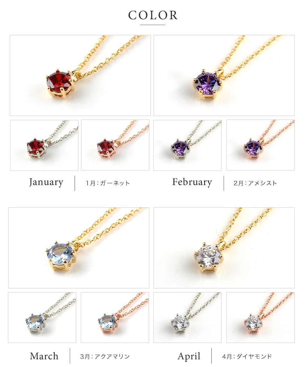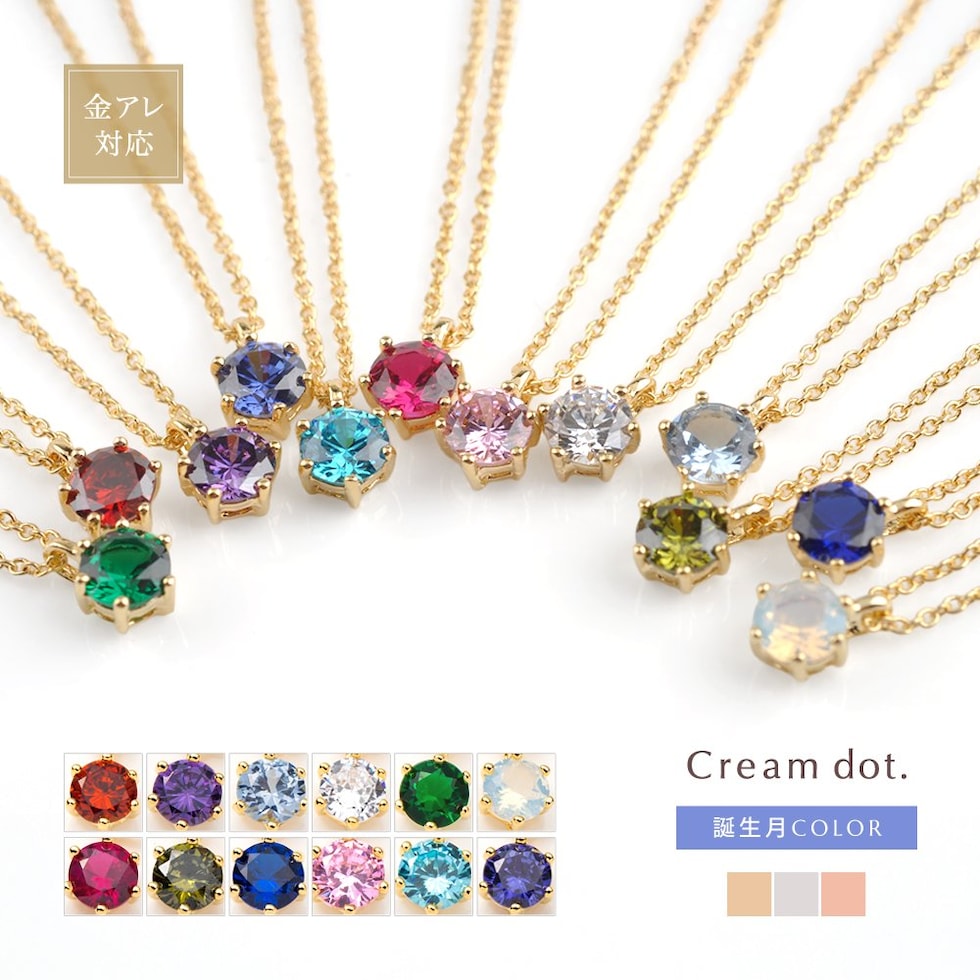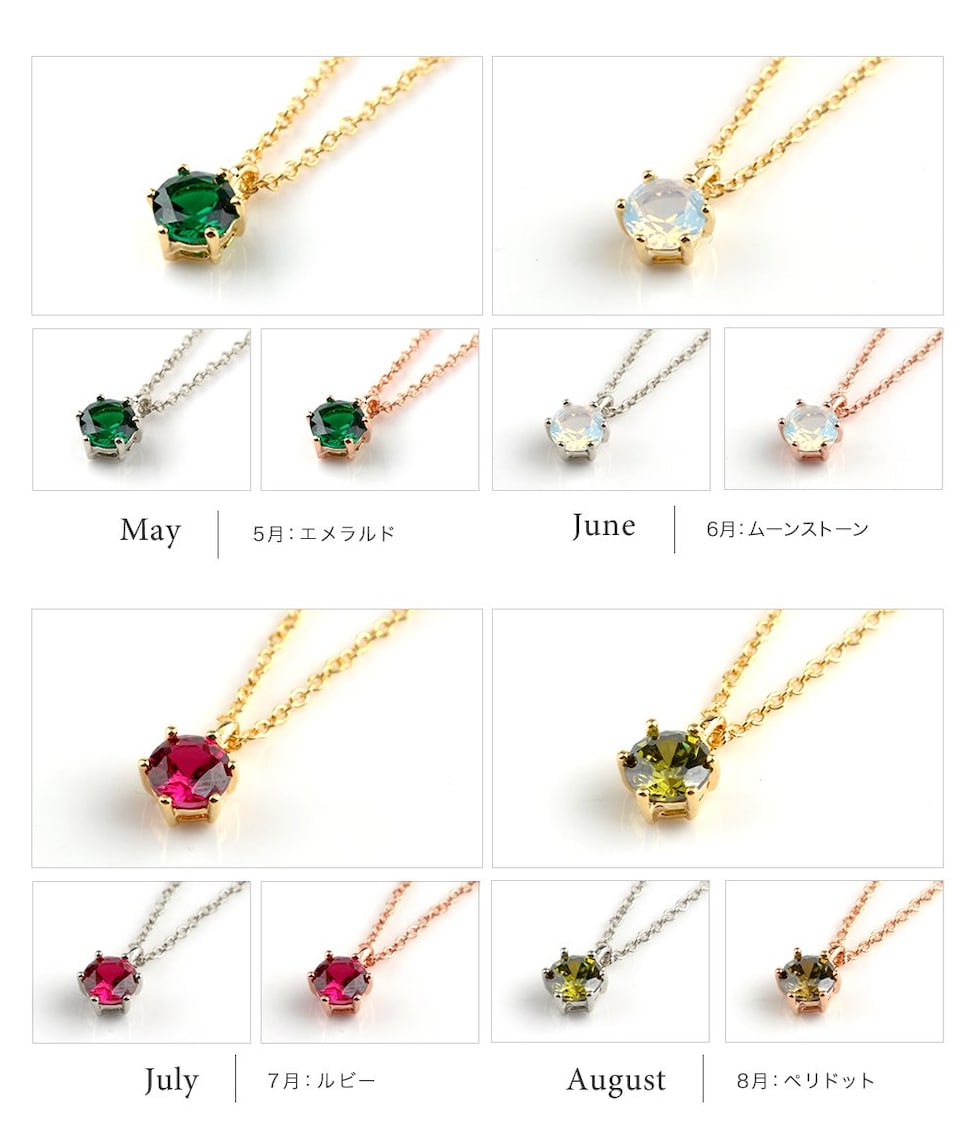 ネックレス レディース 誕生月カラー ジルコニア チェーン ショート アクセサリー ジュエリー アクセサリー cream dot ゆうパケット [2月_ピンクゴールド]