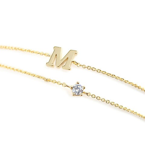 華奢なチェーンにイニシャルモチーフとストーンが可愛く煌めくブレスレット。