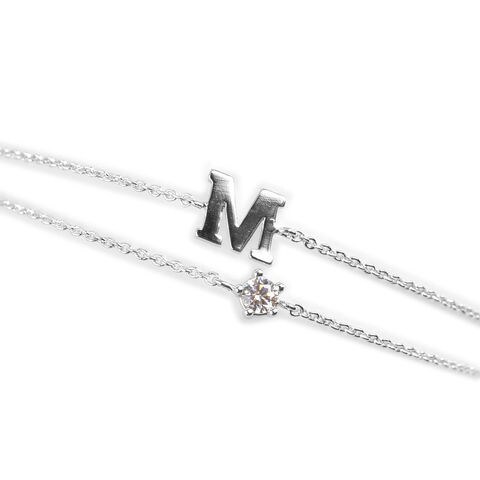 華奢なチェーンにイニシャルモチーフとストーンが可愛く煌めくブレスレット。