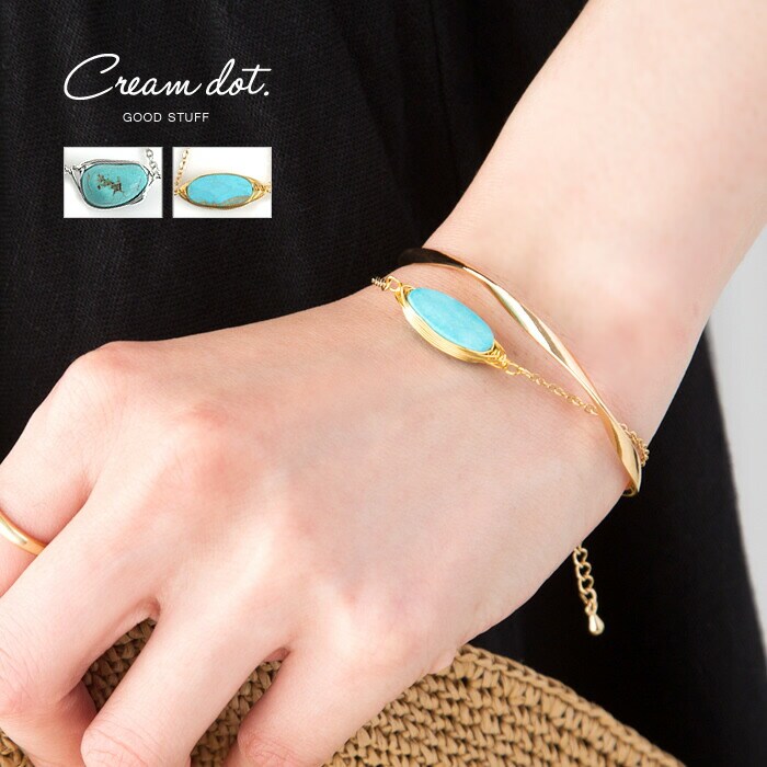 ブレスレット レディース ストーン 茶 2タイプ アクセサリー cream dot ゆうパケット [Aタイプ:ゴールド_ワンサイズ]