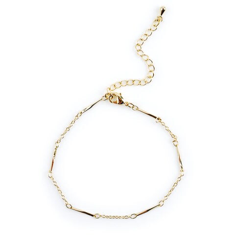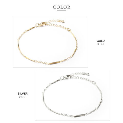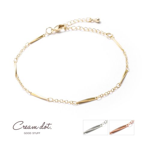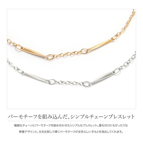 繊細なチェーンにバーモチーフを組み合わせたシンプルなブレスレット。